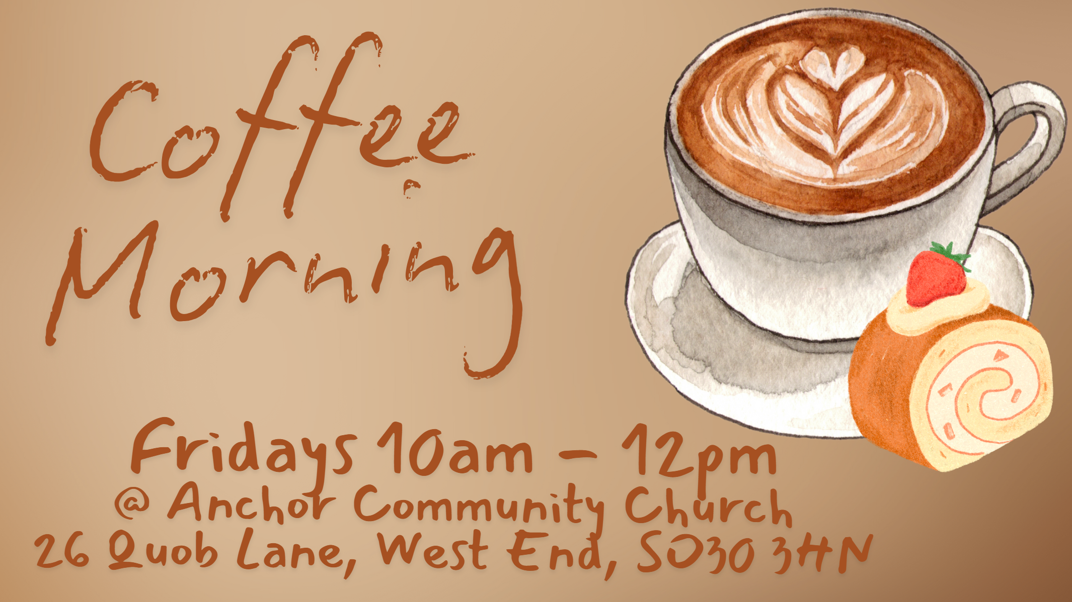Coffee morning is the perfect time to come and connect with others during the week. Grab a coffee or teach (herbal teas and oat milk also available) choose some cake and sit and chat with people. It’s a great warm space to come and make friends with others in the locality.
